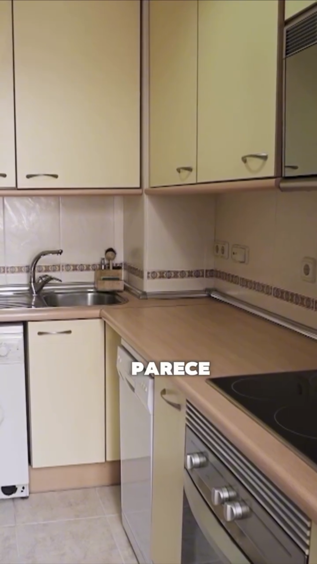 El aspecto de esta cocina es típico de un espacio noventero, con los muebles entre un color amarillo o mostaza oxidada que enfatiza esa sensación de dejadez y 'pasado de moda'. Además, las baldosas con azulejos pintados o la encimera simulación madera ya nada tiene que ver con las cocinas modernas que vemos ahora.