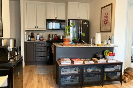 La cocina del interiorista Sam Sakalaki (@livingspace_to) era una cocina de aspecto noventero en la que se combinaba el color claro de los armarios de la parte superior, con el color oscuro de la barra y de la parte inferior. Además del aspecto viejuno que le aportaban, el marrón reforzaba la oscuridad de la cocina, haciéndola triste y normal.