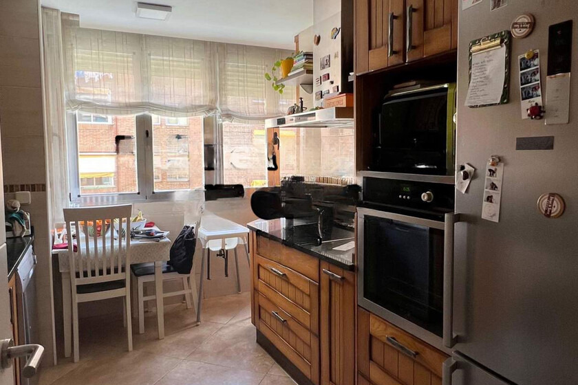 La cocina partía de una base complicada. Los muebles, de un tono oscuro y anticuado, absorbían la luz natural y hacían que el ambiente se sintiera más pequeño de lo que realmente era. La distribución, aunque práctica, quedaba visualmente saturada por la combinación de maderas pesadas, electrodomésticos envejecidos y una iluminación insuficiente.