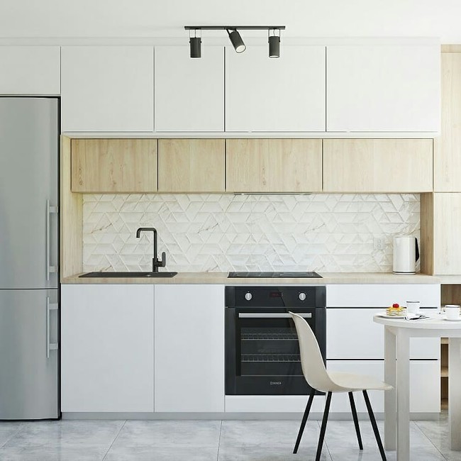 Los muebles en el mismo tono darán sensación de limpieza de continuidad y los colores claros y naturales ayudarán a dar mayor sensación de amplitud en la cocina.