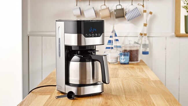Para empezar con esta selección de pequeños electrodomésticos, aquí tienes una cafetera térmica de filtro. Tiene una potencia de 900 W y un regulador de aroma e intensidad. Se incluye un portafiltro intercambiable y una jarra térmica de acero inoxidable con capacidad de 1,2 litros. Además, está integrado un programa de preparación retardada y una pantalla LED. Cuesta 29,99 euros.