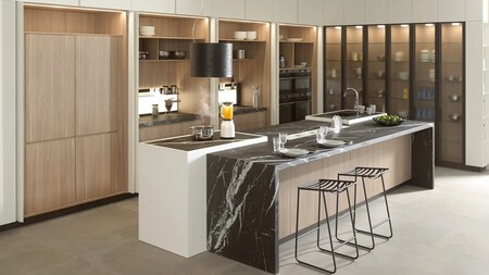 Aunque estas encimeras de inducción invisibles llevan años apareciendo tímidamente, en 2026 esta tendencia va a terminar de imponerse, especialmente en cocinas pequeñas o en las cocinas abiertas integradas en el salón por la mejora estética que suponen al borrar literalmente los límites entre estética y funcionalidad.