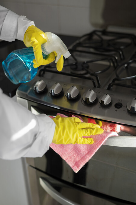 Para empezar, lo primero es limpiar bien toda la superficie con agua tibia y jabón de limpieza neutro para eliminar bien todos esos restos de grasa o suciedad. Después, en un recipiente de cocina mezcla dos vasos de agua caliente, una taza de cloro o lavandina, media de taza de bicarbonato de sodio y un cuarto de taza de agua oxigenada. Remueve toda la mezcla hasta conseguir una disolución soluble y aplica sobre tus electrodomésticos.