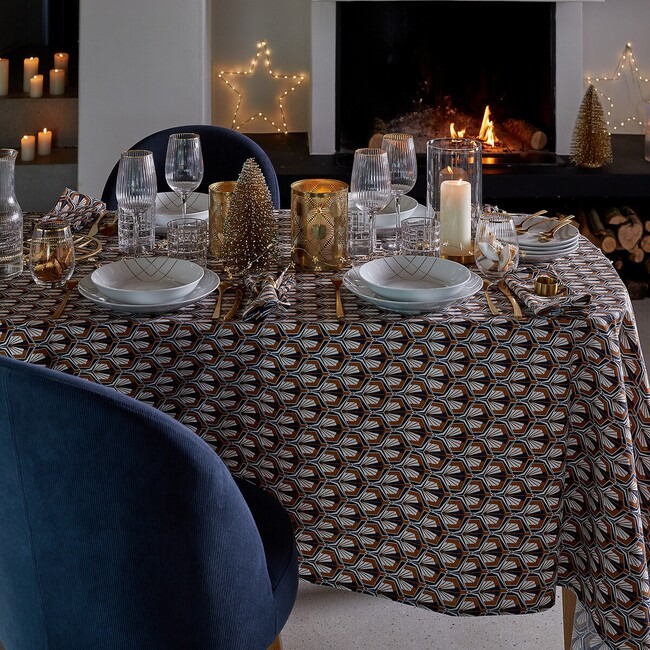 Retomando los manteles estampados, este mantel de La Redoute estampado antimanchas de polialgodón (desde 19.31 €) te ayudará a poner una mesa muy sofisticada.