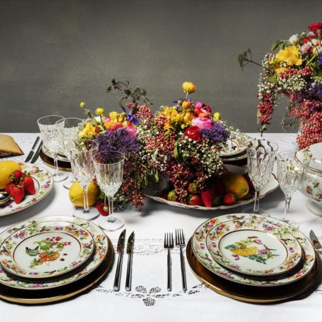 La nueva colección aúna porcelana, oro y motivos botánicos, consiguiendo una decoración digna de un palacio real.