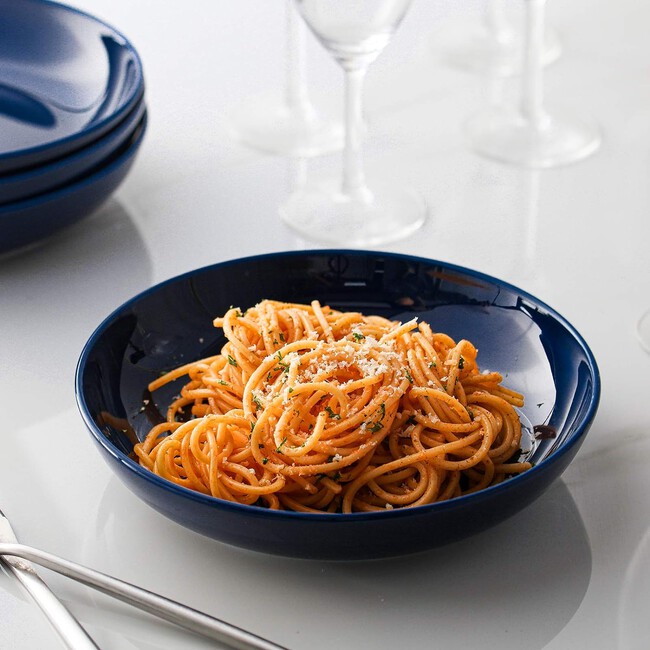 Hay en el mercado otras opciones en la misma línea, cuencos grandes para pasta como los de la foto sobre estas líneas en color blanco por 33,59 euros el juego de cuatro. De Villeroy&Boch también encontramos un juego de dos cuencos de pasta en porcelana blanca más dos boles de ensalada por 59,09 euros, otro juego de cuatro platos hondos en azul para pasta lo encontramos por 57,99 euros y finalmente el juego de seis de Malacasa vale 46,41 euros.