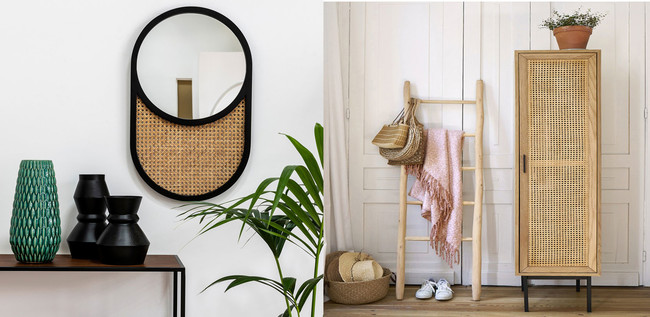 El cannage es el acabado o material del momento. El cannage, o el trenzado de rejilla con fibras naturales, es ahora lo que el mimbre o el ratán fueron hace cinco-seis años; una tendencia en aumento y que parece estar empeñada en colonizar nuestras casas.