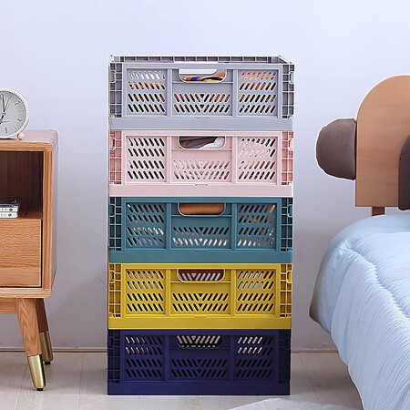 Las cajas plegables de polipropileno en colores, fueron tendencia hace varias décadas, no tanto por su estilo como por su funcionalidad, y ahora se han puesto de moda porque nos recuerdan aquellos viejos tiempos y porque son muy versátiles y prácticas para organizar el almacenaje. En la foto de portada vemos un juego de 4 piezas de cajas de almacenaje plegables en plástico, el juego incluye 2 en verde y dos en azul por 58,99 euros, antes costaban 61,37 euros, pero tienen un descuento del 4%. En Alcampo podemos comprar cajas como estas de una en una y por menos de cinco euros.