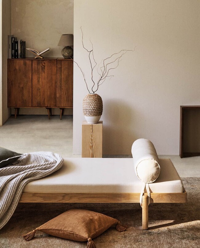 Cama daybed de madera. Incluye colchón y boolster tapizado en algodón, desenfundable y lavable. Precio actual 399,00 € y con descuento Black Friday 319,20 €