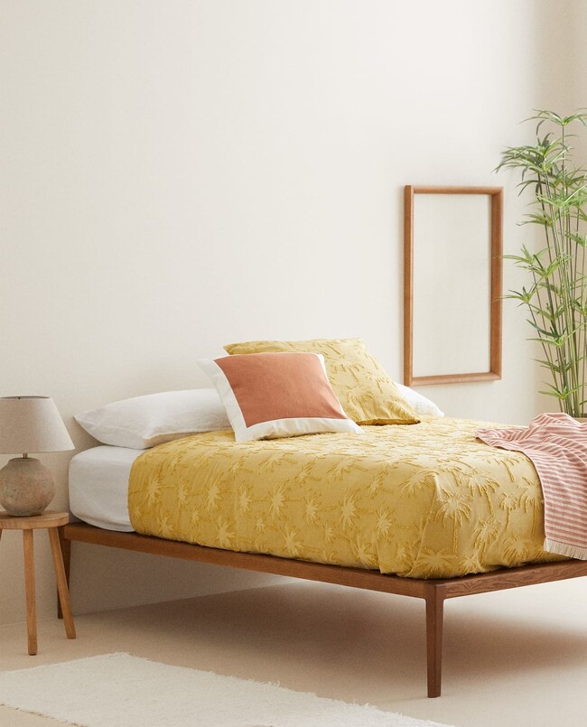 - Zara Home. Funda de almohada de algodón jacquard con siluetas de palmeras. (Set de 2 de medidas 50 x 75 cm) precio antes