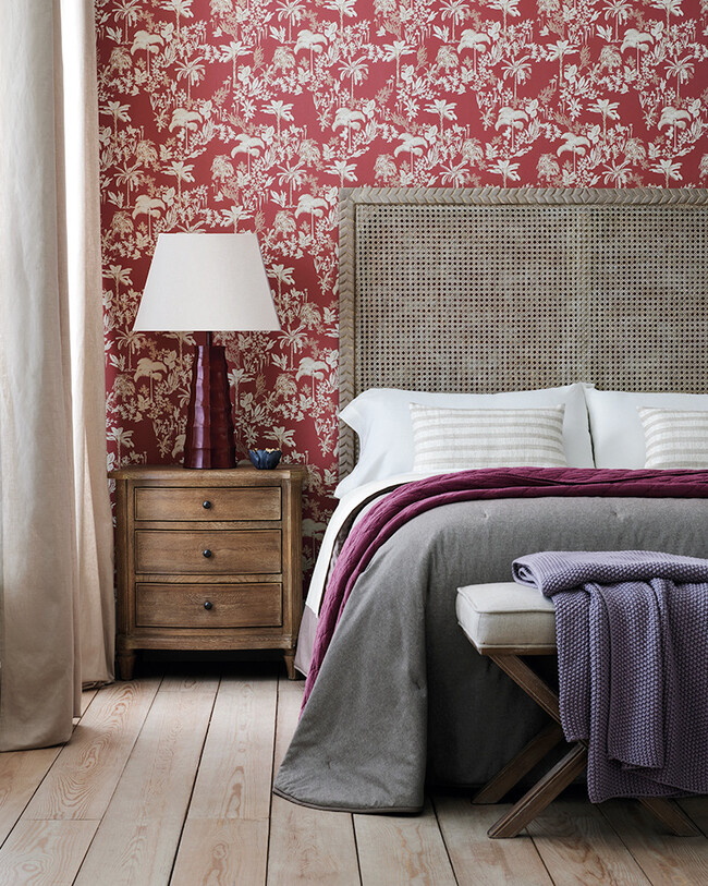 Papel pintado de flores granate para ambientes muy "naturaleza clásica" Papel pintado Paradise El Corte Inglés desde 39,95 €