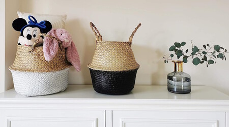 Una de las opciones más decorativas para poner orden en casa y encontrar un lugar para cada cosa se basa en el uso de cestas. Cada vez hay más diseños que combinan el estilo con la capacidad para el almacenamiento. Uno de los diseños más demandados es el de las cestas bicolor que tienen una parte en color natural y otra pintada o teñida en otro tono, la de la foto sobre estas líneas es de mimbre y con tonos natural y blanco cuesta en Amazon 16,99 euros, pero Primark tiene una opción muy similar por menos de la mitad de este precio.