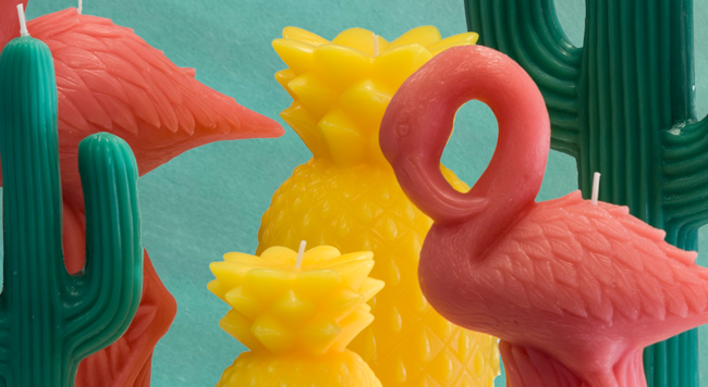 Y quien dice flamencos, dice también velas con forma de cáctus en verde, o de piñas en distintos colores.