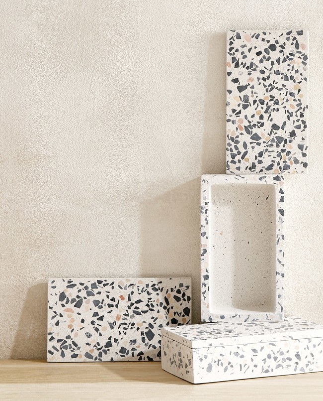 Puede que te haya costado un tiempo digerir la tendencia terrazo. La vuelta del terrazo hace unos años ha sido muy intensa. Tanto que no se se ha limitado suelos y paredes sino que el terrazo ha aparecido como acabado en accesorios, complementos o incluso en mobiliario. Y como muestra la colección "terrazo" de Zara Home.