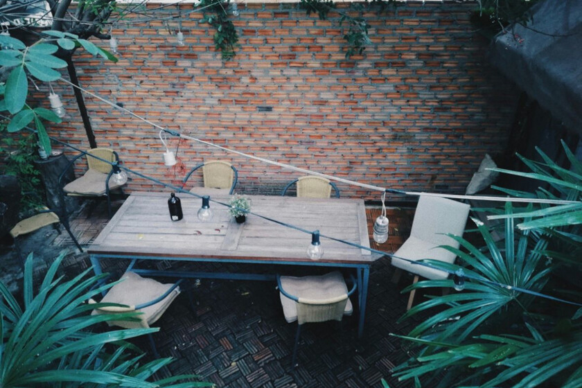 No hace falta una instalación sofisticada: basta con guirnaldas, velas o farolitos solares. La iluminación tenue aporta atmósfera cálida y convierte un patio simple en escenario perfecto para relajarse de noche.