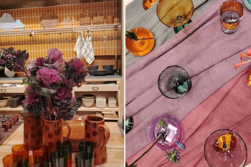 Dado que soy fan de poner las mesas vajillas, la sección que más me gustó fue la de vajillas y cristalerías. Expuestas frente a una espectacular cocina que huele a tradición y con un revestimiento de azulejos en un atractivo color mostaza, hay una selección de piezas ideales para sorprender en una cena o para darse un capricho un día tomando un cóctel.