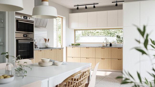 Y lo hace sin restarle una nota de estilo a la cocina porque su diseño minimalista y discreto, en blanco y gris y con ligeros elegantes motivos geométricos aseguran su compatibilidad con todos los acabados de madera o que la simulen, y con los suelos cerámicos más neutros.