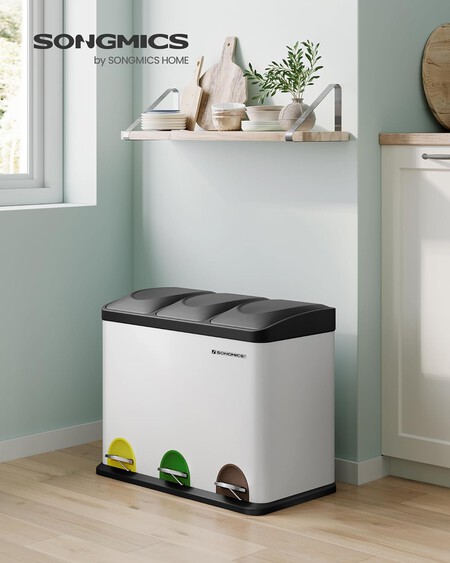 Podemos conseguir al precio más bajo este cubo de reciclaje de tres compartimentos Songmics en Shein por 65,11 euros con envío gratis (en lugar de 109,99 euros).