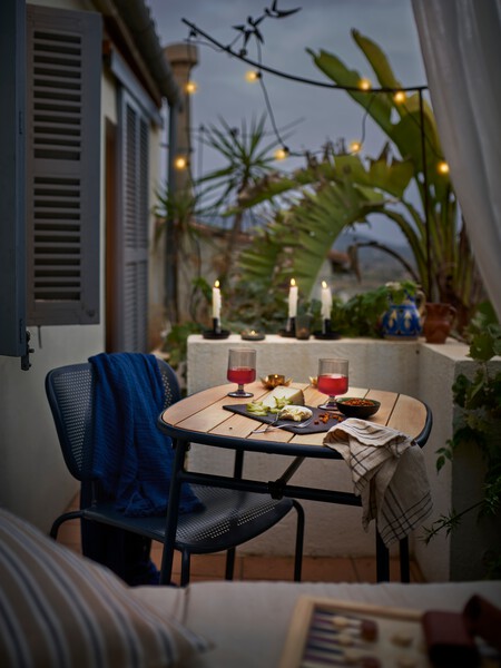 Perfecta para veladas acogedoras sin electricidad, esta elegante lámpara cuenta con una base metálica y un suave resplandor que realza cualquier ambiente de exterior. Además, su diseño portátil y su asa superior hacen que sea fácil de mover de un lado para otro. Funciona a pilas, lo que permite disfrutar de la comodidad inalámbrica que da una de estas lámparas de exterior. Su precio es de 6 euros en Tiger.