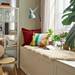 El conjunto SLÅNHÖSTMAL de Ikea combina estilo moderno y funcionalidad en una pieza que aporta energía visual al dormitorio. Con una original paleta de rayas en tonos naranja y rosa, está confeccionado en tejido percal, ideal para lograr una sensación fresca, suave y ligeramente satinada.