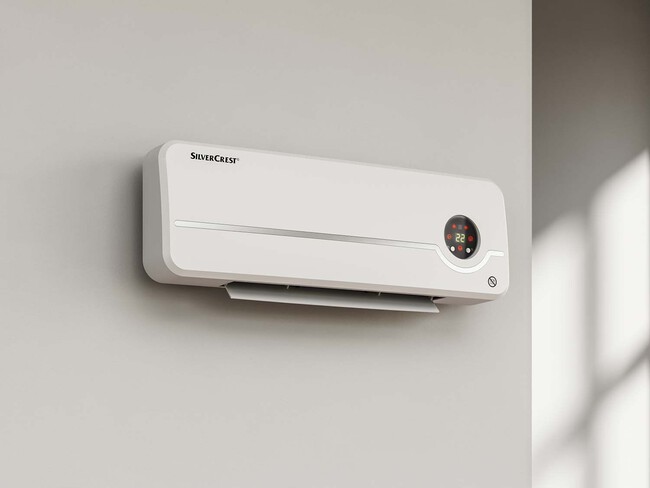 El catálogo de Lidl lanza un calefactor cerámico de pared 2000W SILVERCREST con pantalla LED y temporizador
