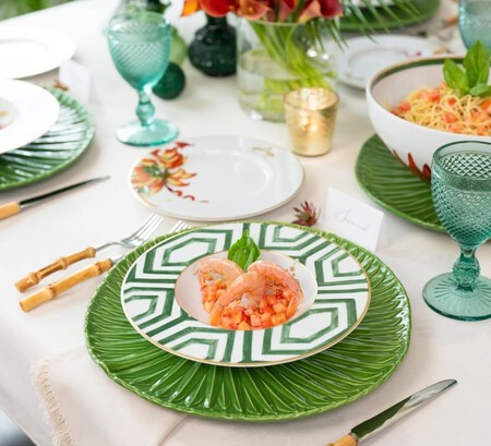 Si te gusta meter un toque de color en la mesa, y ya estás visualizando las mesas que montarás en verano, la vajilla Coralina de Vista Alegre es ideal. Realizada en fina porcelana blanca, las piezas de esta vajilla tienen una orla que remata su borde de formas onduladas, mientras que el centro lleva un motivo floral. Además, ahora tiene un descuento del 20%. El plato llano por ejemplo cuesta 23,20 euros.