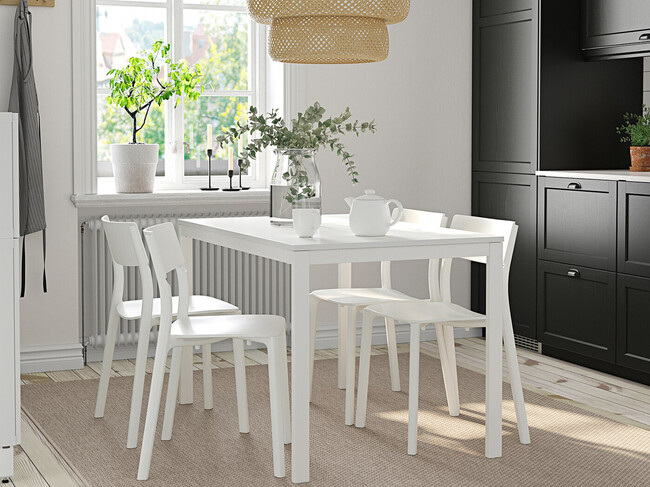 La mesa incluye un tablero de melamina que también resulta fácil de limpiar con sólo pasarle una bayeta húmeda. En estos momentos podemos encontrar este set de comedor rebajado en IKEA por 295,99 euros (antes 325 euros) en color blanco.