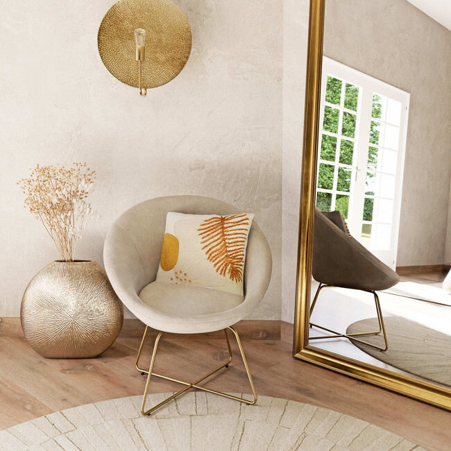 Un cómodo sillón individual que combina una estructura aterciopelada con patas de metal dorado y un revestimiento de color beige pura joya de temporada que brindará un toque de sofisticación a la sala de estar, el domitorio o cualquier estancia donde decidamos instarlo para leer un buen libro mientras vemos llover por la ventana o nos relajamos en el dormitorio. Un mobiliario de 60 centímetros de cómoda profundidad que no dejará indiferente a nadie. Su precio es de 149 euros 139 euros en Maisons du Monde.