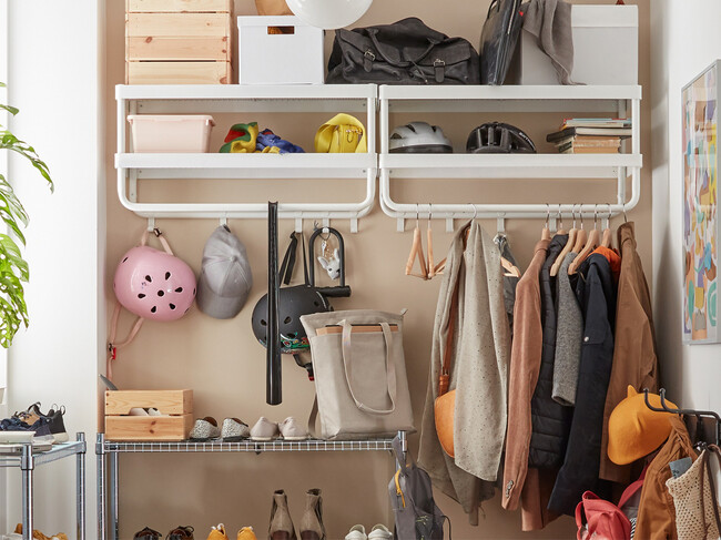 Un mueble versátil y multifuncional bajo el que irán perfectos unos ganchos de los que sujetar perchas con las que colgar abrigos, chaquetas y otras prendas para tenerlas siempre a mano. Su precio en IKEA es de 49,99 euros.