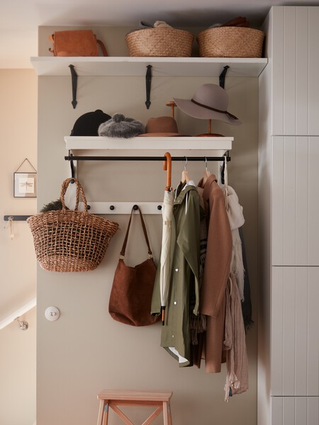 La serie TJUSIG de Ikea va muy bien para tener las chaquetas, gorras, accesorios y zapatos ordenados in ocupar un espacio extra dentro el armario. Además, su sencillo diseño, hecho con madera maciza, se adapta a todo tipo de espacios y mejora el orden en casa, optimizando cada rincón.