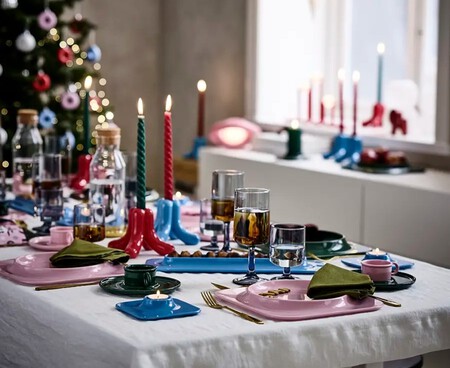 Esta colección de deco de Navidad que sale a la venta hoy, 10 de octubre, ha sido creada por el nuevo fichaje estrella de Ikea, Gustaf Westman. Este diseñador, famoso por sus espejos con marcos rosa chicle y formas curvas, o por taburetes que parecen hechos de globos hinchables, firma esta nueva colección compuesta por 12 piezas compuesta por platos y tazas o candelabros, lámparas y jarrones.