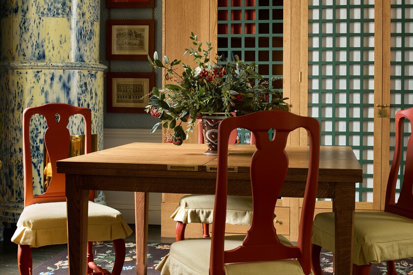 En una estancia pensada para evocar la sofisticación de Los Bridgerton, donde los interiores respiran elegancia y detalle, este papel se convierte en el telón de fondo perfecto. Sus formas orgánicas y su paleta delicada se integran con muebles clásicos o contemporáneos, añadiendo una capa de historia y poesía visual que recuerda a los salones de la época. Su precio es de 60 euros.