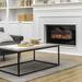 La chimenea tiene un diseño horizontal de 90 centímetros de ancho, un formato que queda perfecto en cualquier salón o en el dormitorio. El acabado en negro brillante le da un toque de elegancia. Y a nivel funcionamiento, este dispositivo tiene cinco niveles de luminosidad y simula el fuego real.
