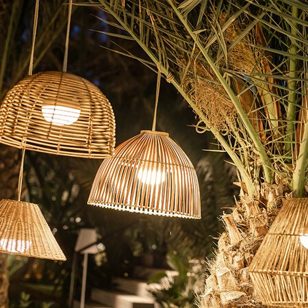 Se trata de una lámpara de techo fabricada en fibra natural ideal tanto para usar en el interior como en zonas exteriores, así como jardines o terrazas donde no contemos con una luminaria ni corriente eléctrica para su instalación. Y es que, esta lámpara de techo funciona a través de una batería de hasta 20 horas de duración, por lo que no necesitaremos instalación ni toma de corriente.