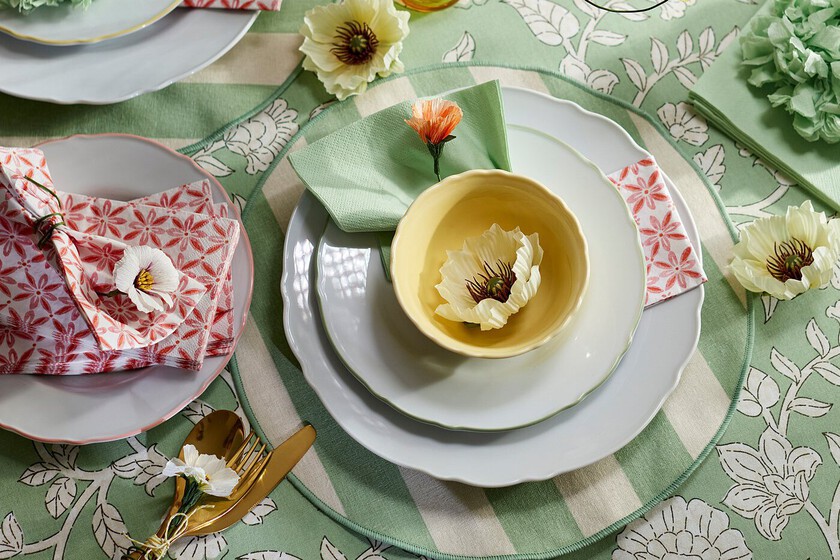 Su combinación de verde claro y rosa, en acabados suaves y forma redondeada, introduce en la mesa una estética delicada que evoca la frescura de la primavera y el encanto de la vajilla clásica reinterpretada en clave contemporánea. Diseñada por Lisa Hilland, forma parte de una colección pensada para crear composiciones armoniosas, donde el color y la ligereza visual son protagonistas.