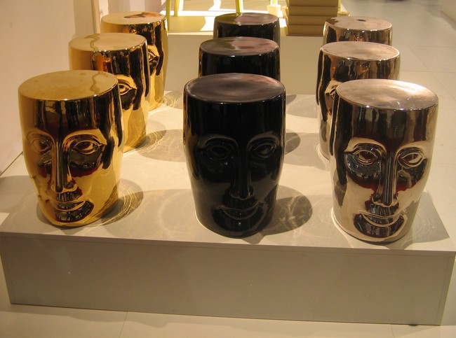 Conocido por sus piezas inusuales ha creado este objeto con estructura de taburete o mesa auxiliar con una terminación brillante y en colores metalizados, rojo, negro o blanco realizados en porcelana. Lo atrayente de estos modelos son la caras barrocas que representan a la de Buda realizada por Lorenzo de Medici o la Musa dormida de Brancusi. Ideales como objetos decorativos también se colocan en estanterías dándo un toque surrealista a los ambientes.