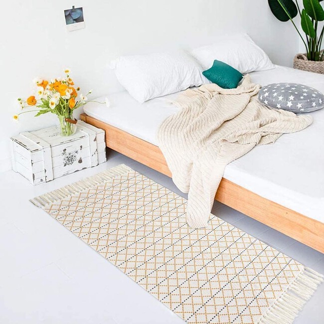 hi-home Alfombra para sala de estar, de algodón, tejida a mano, con borlas, para dormitorio, cocina, pasillo, lavandería, lavable a máquina, para interior/exterior, alfombra de 60 x 130 cm (amarillo)