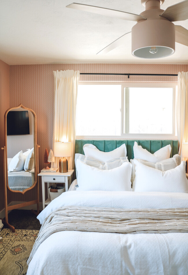 En las fotos sobre estas líneas podemos comparar el antes con el después y ver claramente cuáles han sido los cambios. El dormitorio tenía dos ventanas y el cabecero se ha movido de una a la otra, al tiempo que se han completado detalles alrededor. Un espejo inclinable de estilo rústico y de características similares lo encontramos en Amazon por 82,90 euros, una manta de punto hecha a mano en color beige la hay por 72,54 euros y la mesita de noche auxiliar blanca para dormitorio cuesta en Amazon 108,99 euros el set de dos.