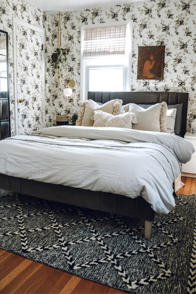 Nos inspiramos este sábado con un nuevo antes y después de habitación de matrimonio. En este caso se trata de un dormitorio pequeño en el que el cambio de orientación de la cama es clave para lograr una mayor sensación de amplitud. Hay otros cambios significativos como el uso del papel pintado, similar a un floral que podemos encontrar en Amazon por 22,79 euros, y un montón de detalles decorativos. El color blanco y el juego con espejos suman para parezca mayor el espacio.
