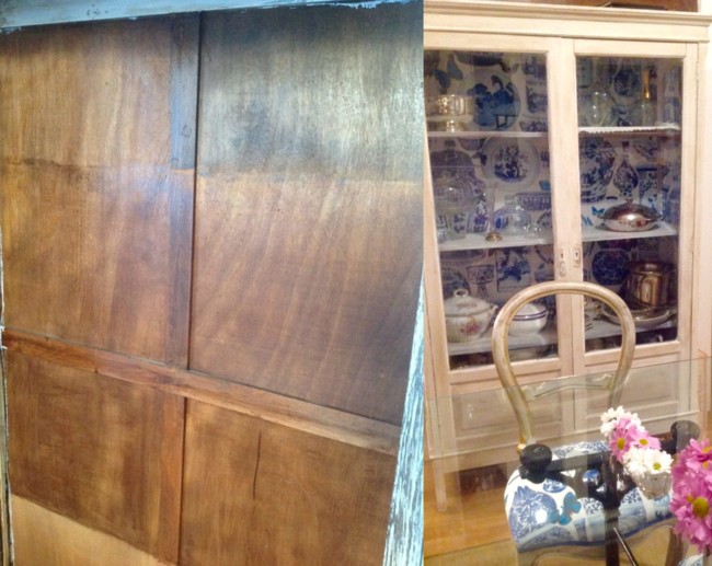 Se trataba de un mueble low cost (para que luego digan que no había mueble barato en España antes de los nórdicos) que alguien había forrado de flores sesenteras y pintado de blanco con un envejecido que si bien en su día fue bonito, la pátina del tiempo, unido a que el betún de judea se había aplicado sin tasa ni medida, hacía infumable.
