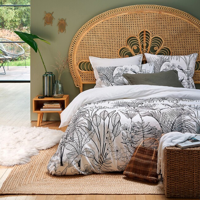 Empezamos con el verde, más allá del verde menta es tendencia desde hace ya varias temporadas, han entrado en juego otros tonos de verde como el verde oliva, en general se trata de tonos suaves que, junto con materiales orgánicos, nos ayudan a establecer una conexión muy directa con la naturaleza. La imagen sobre estas líneas es un ambiente de Maisons du Monde para presentar su cabecero de lino lavado Morphée y un bote de 4 L de pintura verde suave de Bruguer cuesta en Amazon 25,99 euros.