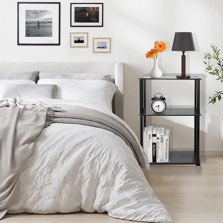 Los tres estantes que componen esta mesita de noche están fabricados de madera MDF sólida y las patas están hechas de un material de resina atractivo y duradero. Fácil de limpiar, montar e instalar en cualquiera de las estancias que necesitemos, podremos regular su altura en función a nuestras necesidades de espacio. Su precio es de 46,99 euros 37,59 euros en Amazon.