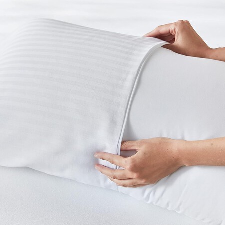 Por cuestión de estética y sobre todo de higiene, conviene utilizar para las almohadas de la cama fundas protectoras de algodón y además de lavarlas con regularidad también renovarlas cada cierto tiempo. Tienen contacto muy directo con nuestro cuerpo y durante muchas horas, tarde o temprano incorporan manchas de sudor o saliva y, por tanto, están entre los textiles de la casa a los que más atención debemos prestar. La de la foto sobre estas líneas es de Pikolin Home, el pack de dos cuesta 14,48 euros pero Primark tiene la que probablemente es la opción más barata del mercado.