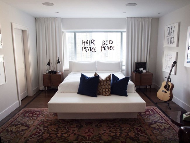 Los muebles, aunque no son los originales, sí son diseños que bien podrían corresponder a la época (finales de los 60) y cuenta con un atrezzo especial como una grabadora y una guitarra antiguas que nos recuerdan que, entre estas cuatro paredes, John Lennon compuso e interpretó por primera vez "Give the peace a chance".