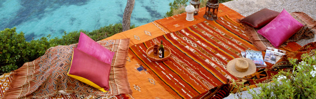 Aunque el calor sigue apretando y el frío aún tarde en llegar sacar las alfombras al exterior es tendencia para uso y disfrute en cualquier estación del año. En la actualidad los exteriores se han vuelto algo pobres, si sus suelos no se revisten con complementos textiles, parecen estar incompletos. En el mercado existen cantidad de alfombras realizadas con variedad de materiales y pese a que su venta disminuye en verano continúa estando activa. Entre ellas los más solicitados son los kílims confeccionados con multitud de hilos que se mezclan entre sí en vivos colores. Son tejidos a modo de tapiz que generalmente tienen un tamaño pequeño o mediano. Sus características principales: los motivos geométricos y la combinación de sus tonalidades.