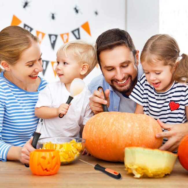 Ubitree Herramientas de tallado de calabaza, Kit de tallado de calabaza de Halloween, Juego de herramientas de calabaza de acero inoxidable resistente de 4 piezas para adulto y niño
