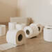 El cartón de los rollos resulta ligero, resistente y adaptable. Al doblarlo, reforzarlo se transforma en un objeto que no solo resuelve el desorden, sino que añade un toque personal. No hace falta mucho para que funcione.