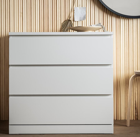 La cómoda Malm de Ikea es uno de los muebles más vendidos de Ikea. Su éxito se explica por muchas razones; por un lado, su gran capacidad de almacenamiento porque se aprovecha al máximo el volumen del mueble para dar lugar a cajones grandes en los que guardar ropa u otros enseres personales; por otro, su diseño minimalista y limpio con cajones con frentes superiores que son también uñeros que facilitan su apertura y limitan el diseño a líneas verticales y, por último, su precio, (la de tres cajones por 79,99 euros) que como siempre nos anima a hacernos con una pieza tan completa.
