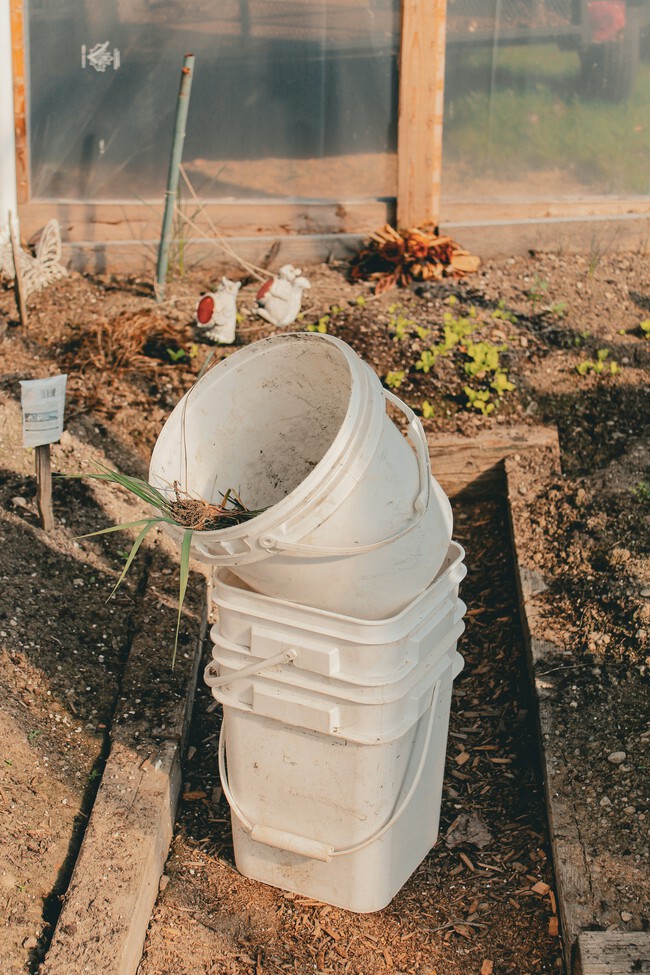 Antes los tiraba, pero ahora utilizo los cubos de plástico viejos como taburete en el salón
