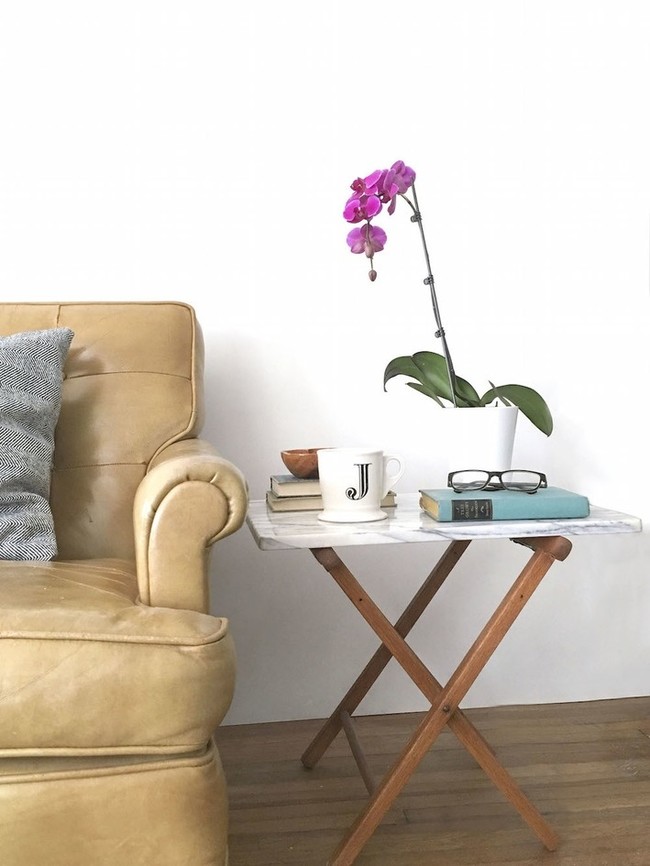 Sin ser muy grandes, pero también hemos visto como hacer mesas en varios estilos. Una mesa auxiliar de mármol como la de la primera foto de este artículo, una mesa en esquina para un balcón como la de la foto sobre estas líneas e incluso una mesilla de noche colgante para dormitorios de tamaño reducido.